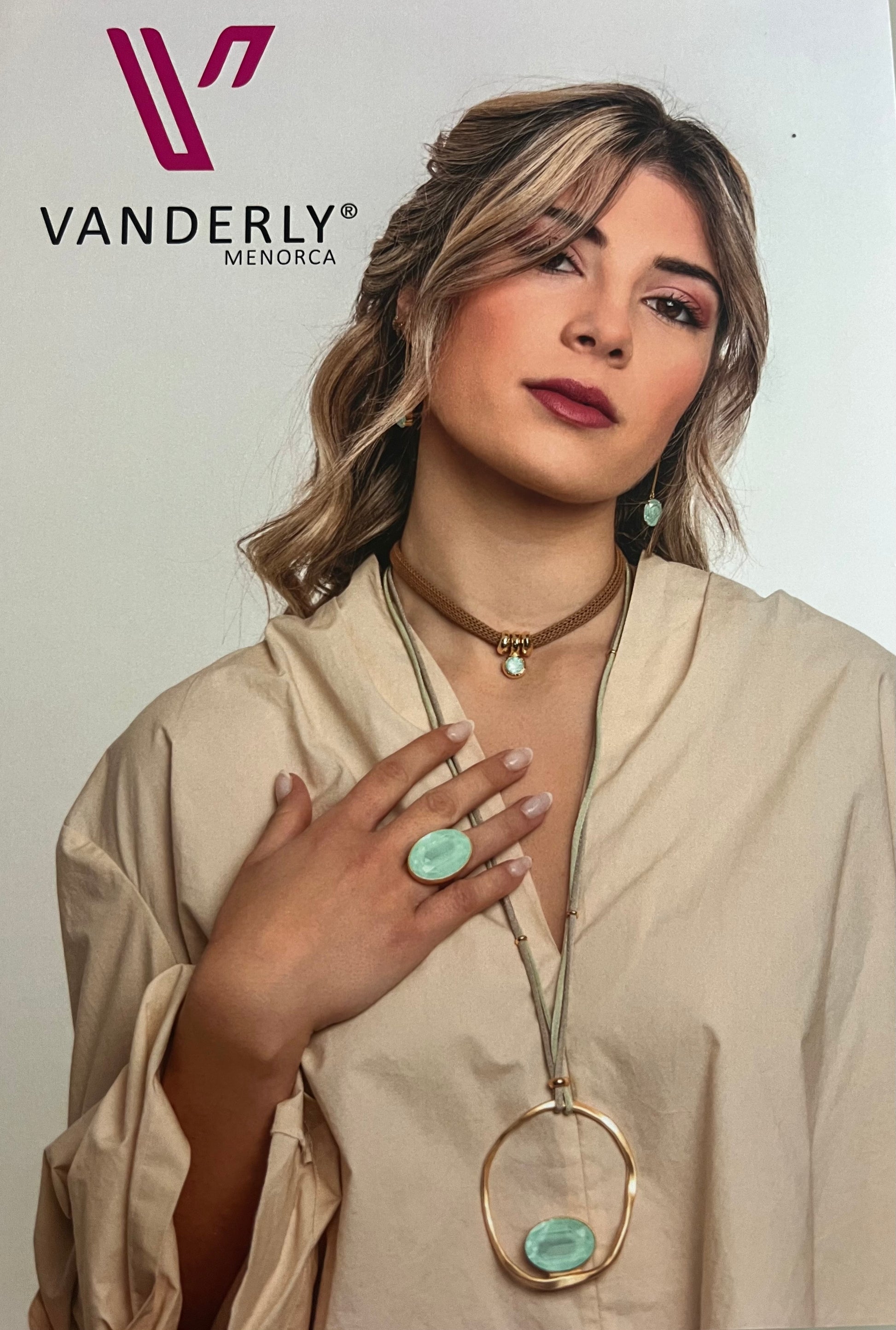 Adjustable Vanderly Necklace featuring a large oval brown topaz or blue sapphire gemstone.
