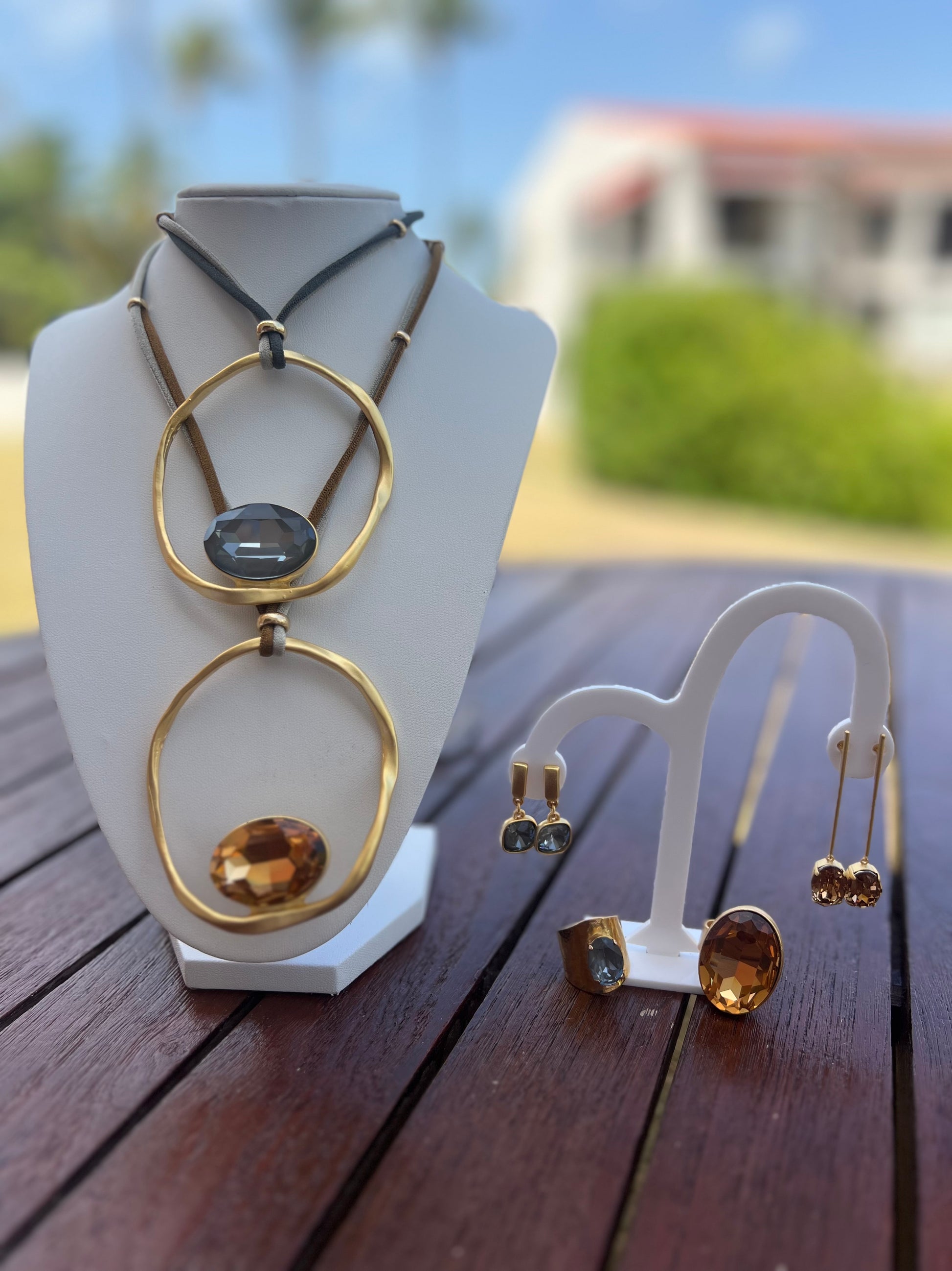 Vanderly small earrings featuring blue sapphire gemstone.