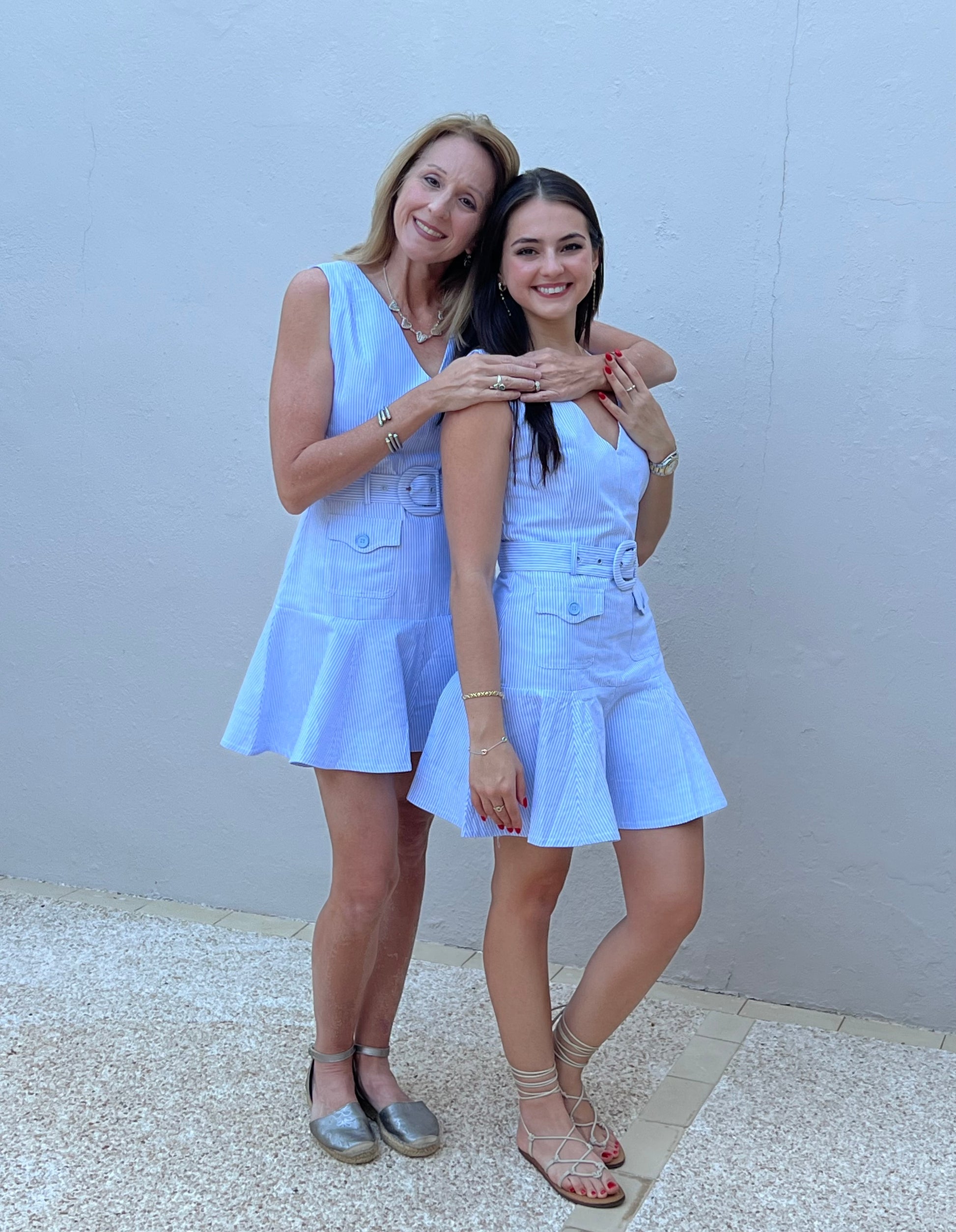 Experience spring and summer in style with our Blue & White Short Dress, designed for comfort and chicness. The lightweight cotton fabric is perfect for those hotter days, making this dress a must-have for any wardrobe.