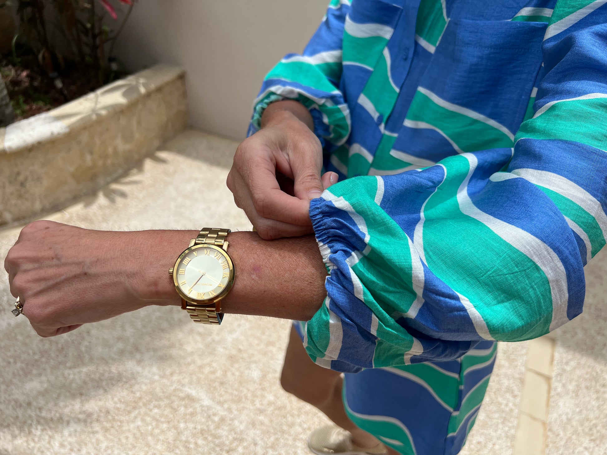 This Button Down Woven Shirt Top And Pant Set features a colorful design with an elastic sleeve and waistband for added comfort. A must-have addition to your wardrobe.